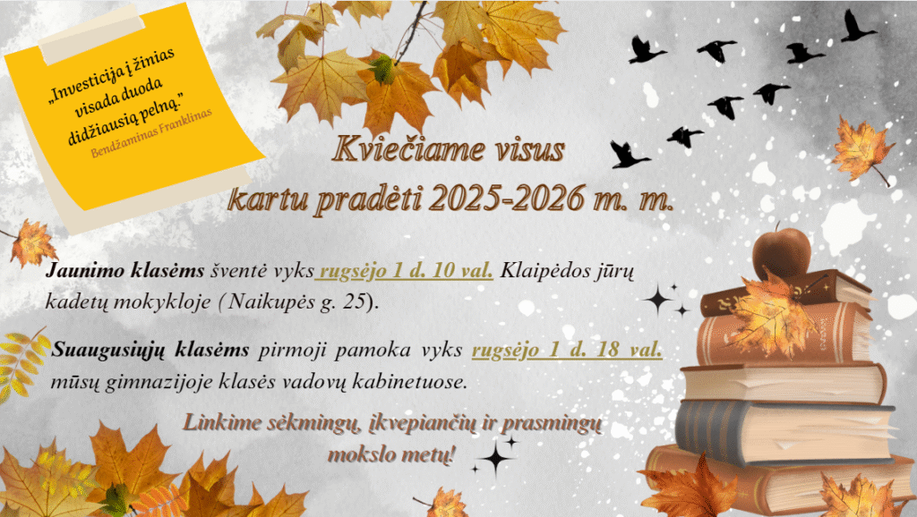 Rgp 26 2025 Išjungta Navigacija tarp įrašų Ankstesnis įrašasAnkstesnis Gimnazijos abiturientams nuskambėjo paskutinis skambutisKitas įrašasKitas Pasaulinė savižudybių prevencijos diena