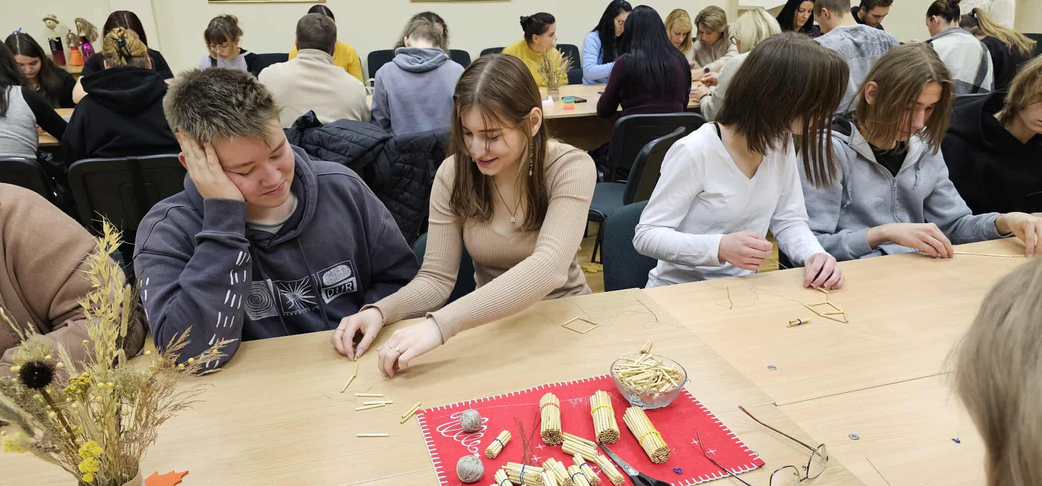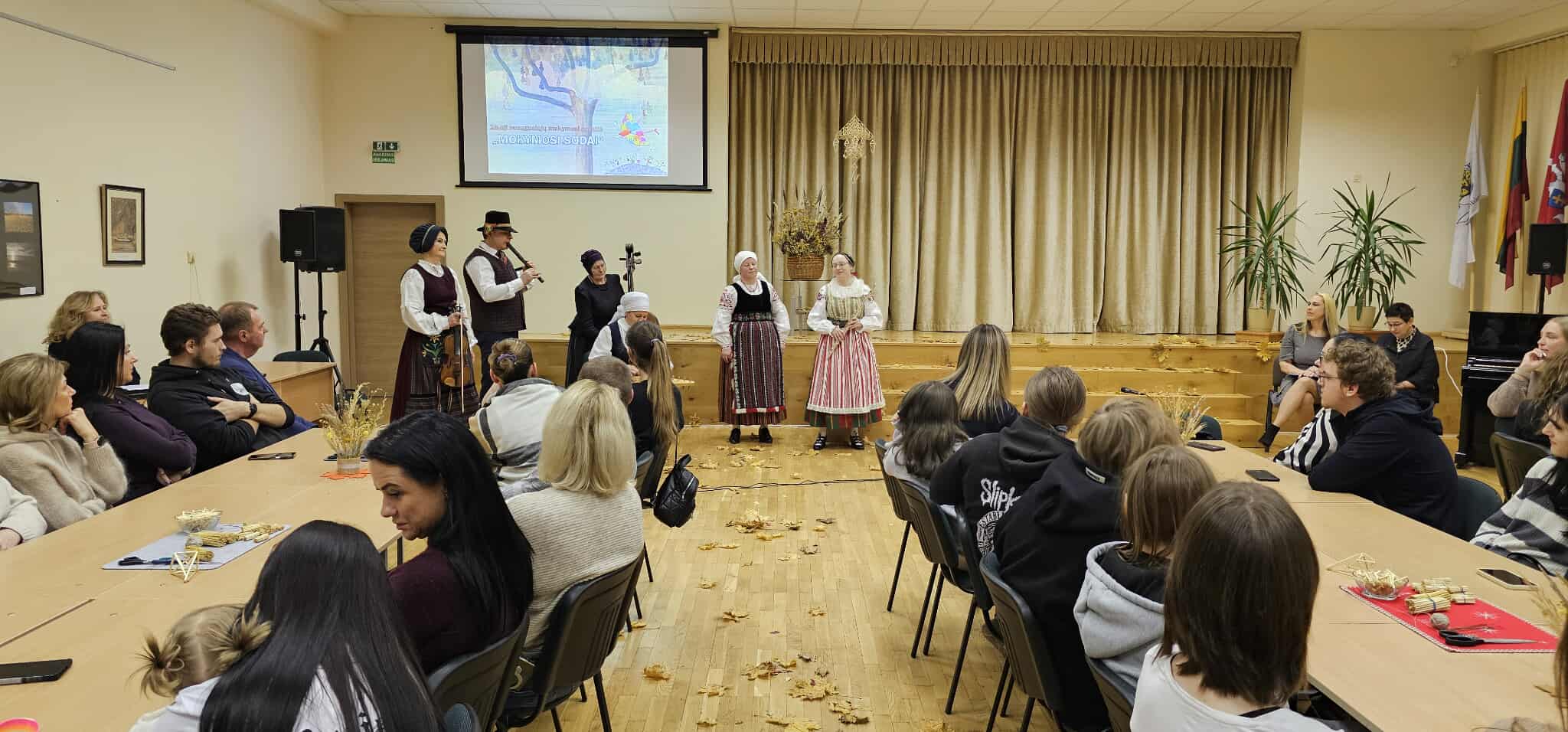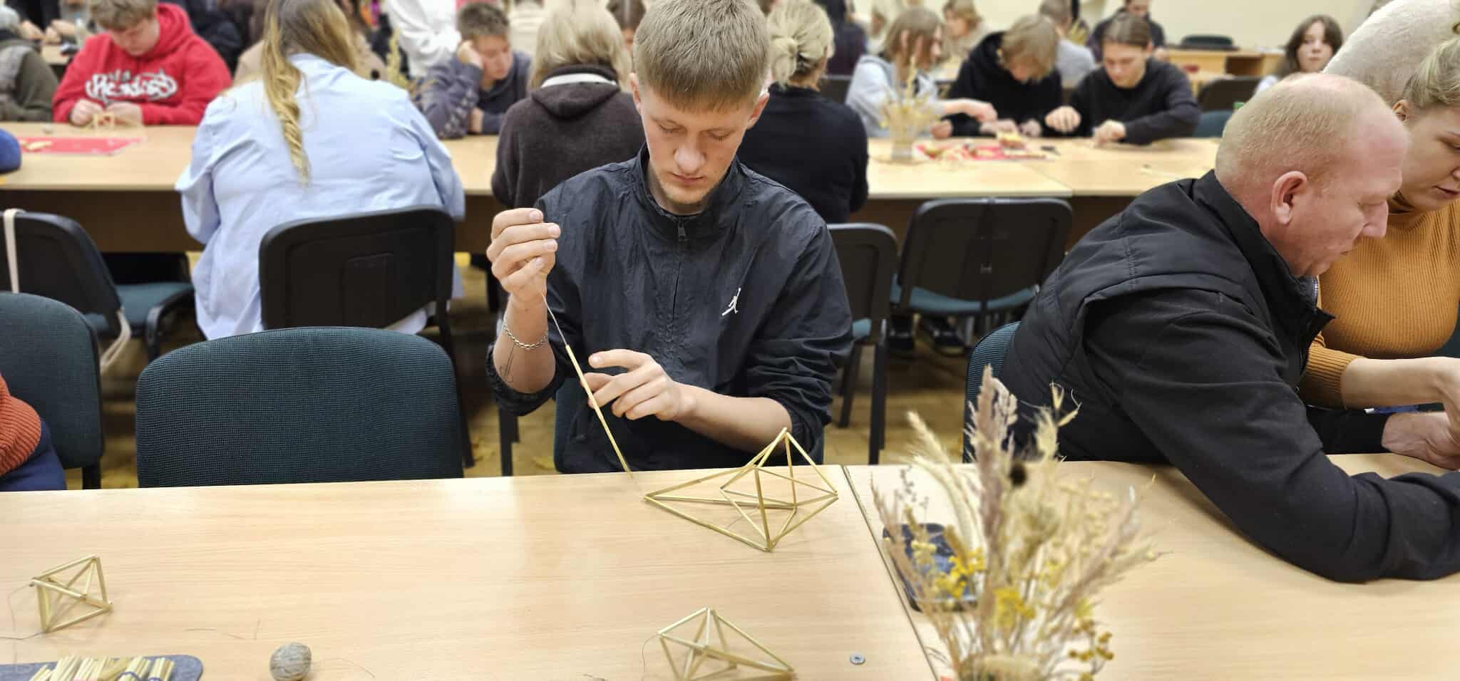 Kaip ir kiekvienais metais, taip ir šiais, džiaugiamės galėję pakviesti gimnazijos bendruomenę į dvidešimt šeštąją Suaugusiųjų mokymosi savaitę ,,Mokymosi sodai‘‘, kuri vyko lapkričio 24 – 28 d. Tai laikas, kai sustojame ir atsitraukiame nuo kasdienių rūpesčių ir kartu pasineriame į kūrybišką gimnazijos gyvenimą. Ši savaitė buvo gausi renginių ir pilna puikių emocijų. Ją įprasmino lapkričio 26 d. vykusi edukacinė popietė ,,Šiaudinio sodo kelias“. Renginio metu dalyviai susipažino su šimtmečius menančia šiaudų rišimo tradicija – jų simbolika, reikšme ir vieta mūsų kultūroje. Gimnazijos bendruomenė turėjo galimybę savo rankomis sukurti savąjį šiaudinį sodą, pasijusti tikrais kūrėjais ir ne tik sukurti rankų darbo grožį, bet ir pajusti šilto buvimo kartu įspūdžius. Kaip sakė gimnazijos direktorius M. Vilimas, kiekvienas esame šio gimnazijos sodo dalis ir savo darbais bei mokymusi kasmet jį pildome.