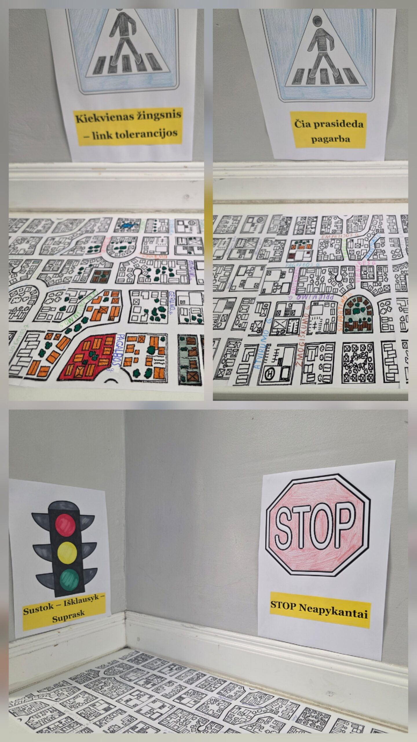 Jaunimo klasių skyriaus mokiniai žiūrėjo filmą, ugdantį empatiją, toleranciją ir pagarbą kitokiam. Po filmo peržiūros ir aptarimo žemėlapyje kūrė ir rašė gatvių pavadinimus tolerancijos tema – žodžius, atspindinčius draugiškumą, pagarbą, įvairovę bei atvirumą kitam. Visi šie pavadinimai vėliau buvo sujungti į bendrą Tolerancijos gatvę, simbolizuojančią mūsų vienybę ir kiekvieno indėlį kuriant saugią, įtraukią ir pagarbią aplinką.