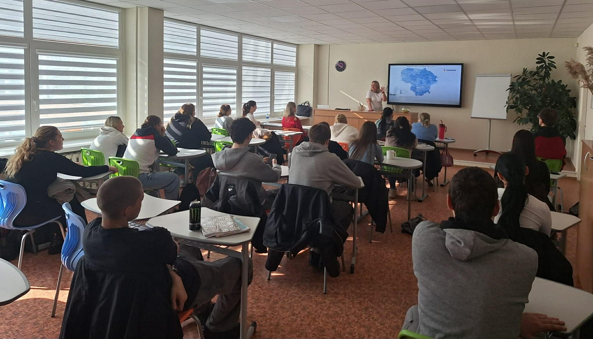 2026 m. kovo 18 d. gimnazijoje vyko susitikimas su atstove iš Klaipėdos Užimtumo tarnybos. Jo metu mokiniams buvo pristatyta paskaita apie šiuolaikinę darbo rinką bei paklausias ateities profesijas. Susitikimo metu mokiniai susipažino su darbo rinkos tendencijomis, sužinojo, kokių įgūdžių ir kompetencijų labiausiai reikės ateityje, bei gavo naudingų patarimų planuojant savo karjeros kelią.