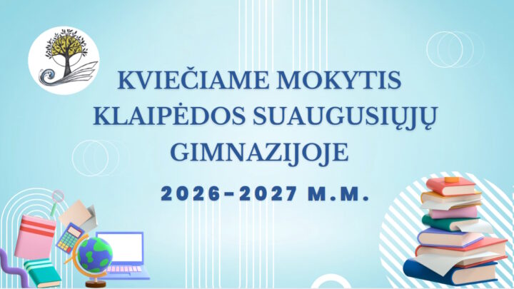 Kviečiame mokytis Klaipėdos suaugusiųjų gimnazijoje 2026-2027 m. m.